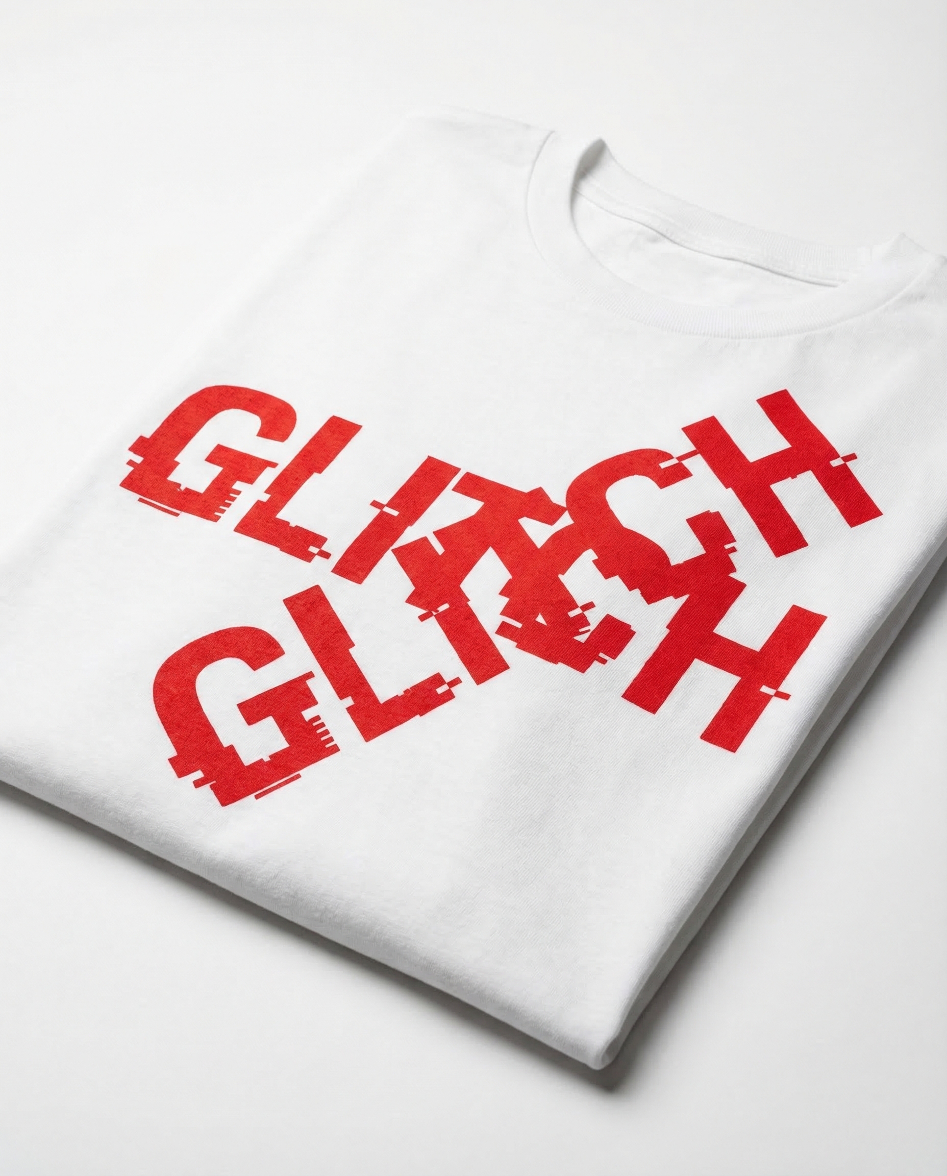 White 100% organic cotton tee with red glitch-distorted WARSAW GLITCH logo. Heavyweight 200gsm. Unisex regular fit. Festival dates on back.